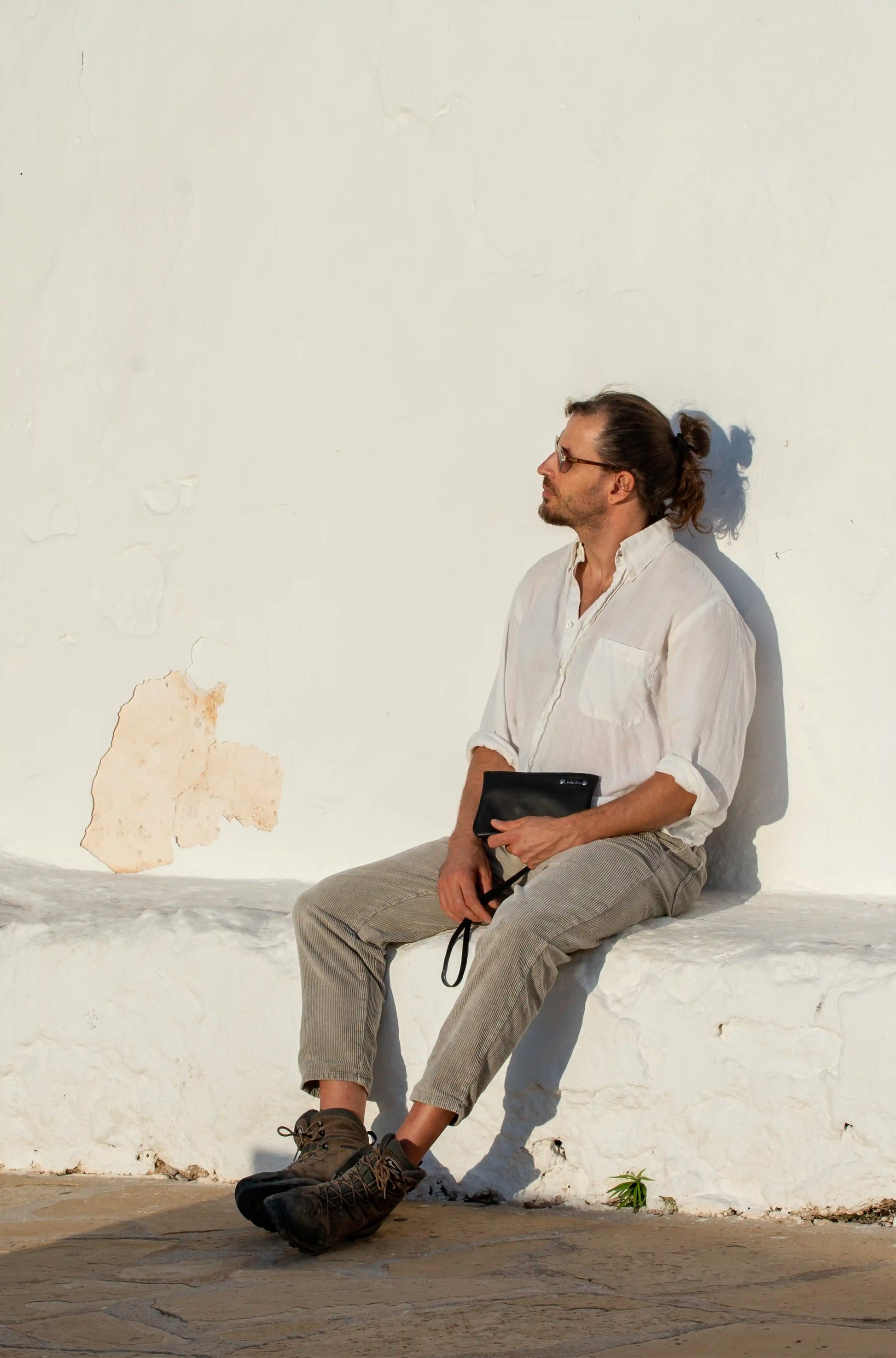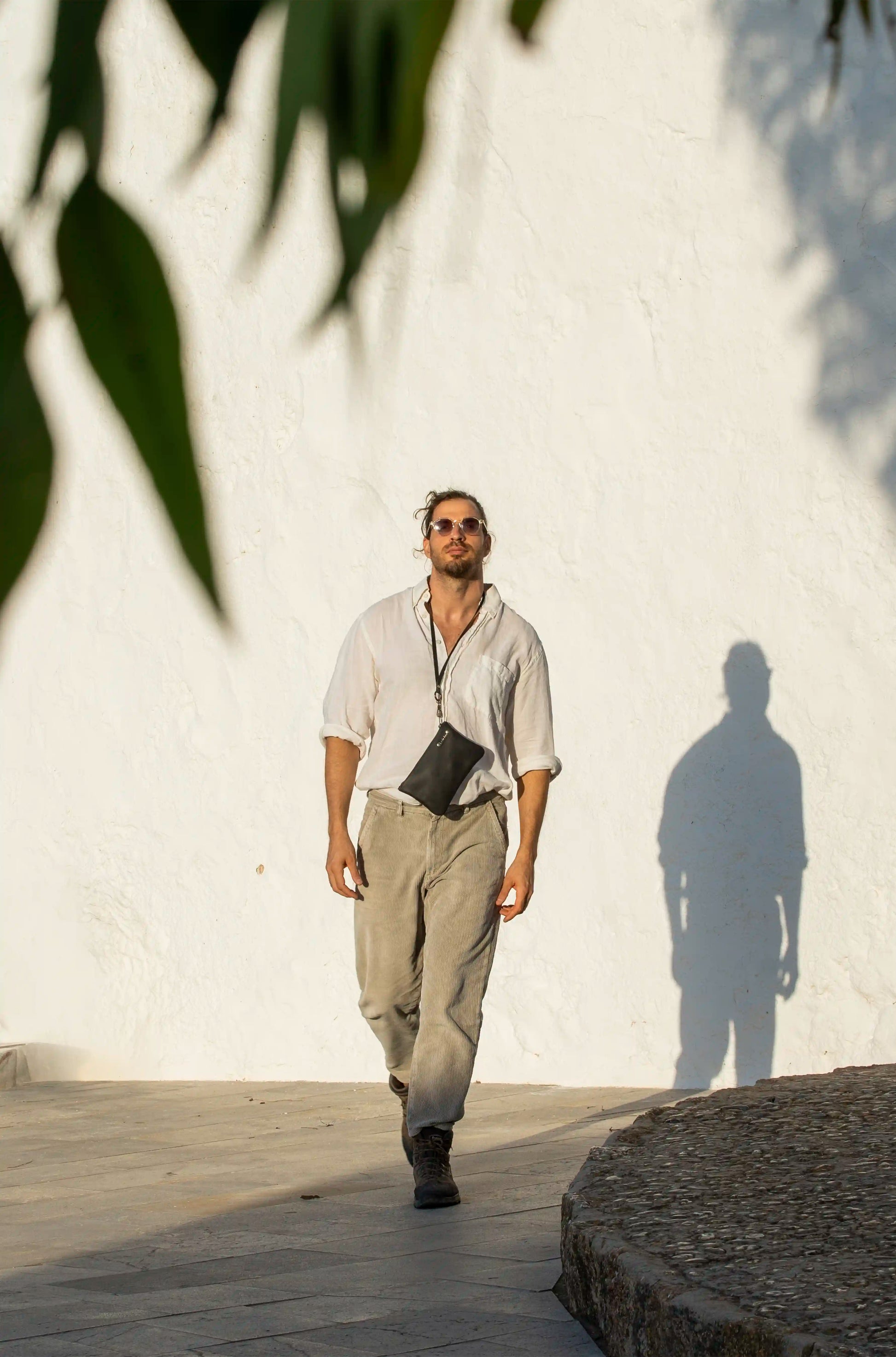 Handmade in Ibiza, this black leather bag for men combines refined craftsmanship with effortless functionality.
