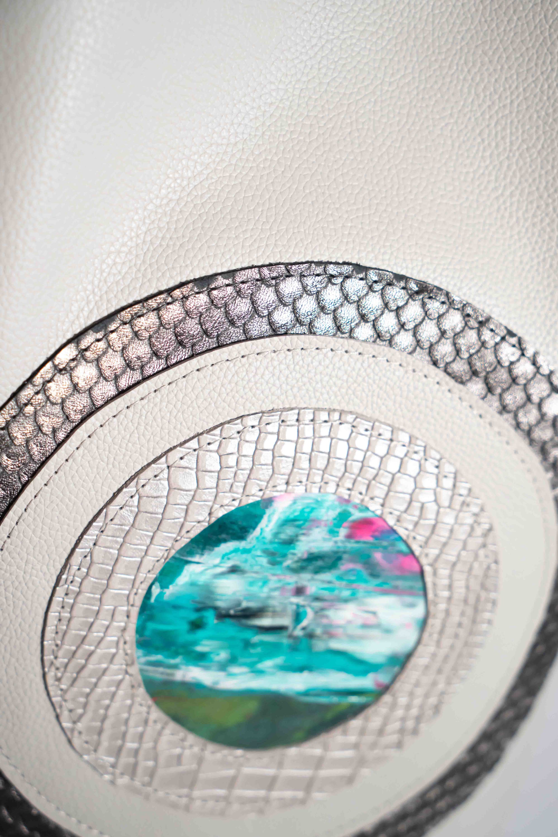 Handmade leather white shopper bag with leather straps. Perfect for everyday use - can hold a laptop or is a great carry all. It has a zip pocket inside and a leather strap with clip to secure your valuables. The bag has a circle detail on the outside that is also a zip pocket.