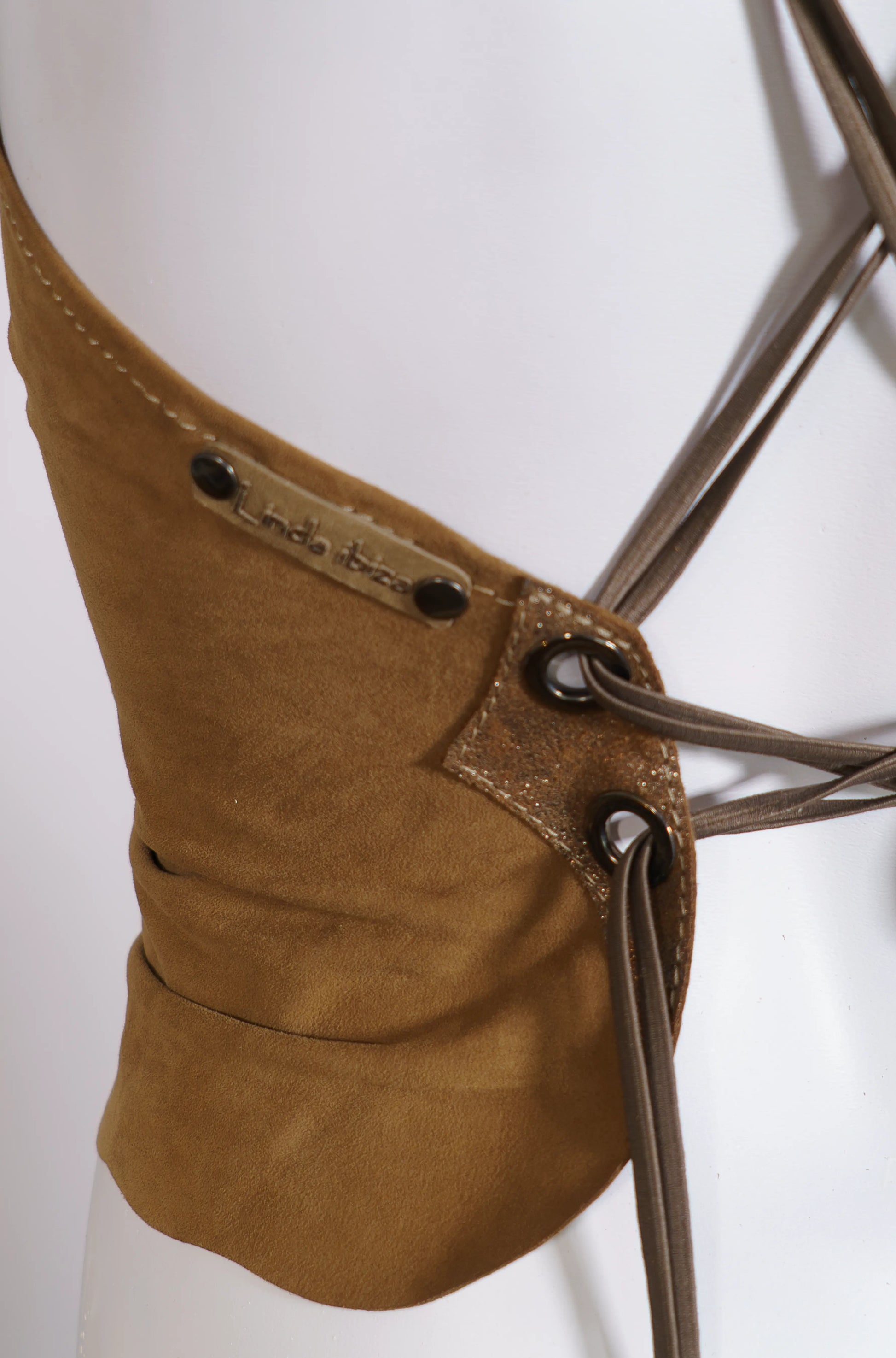 Handmade in Ibiza from premium cowhide leather, this beige top embodies effortless sophistication and free-spirited charm.